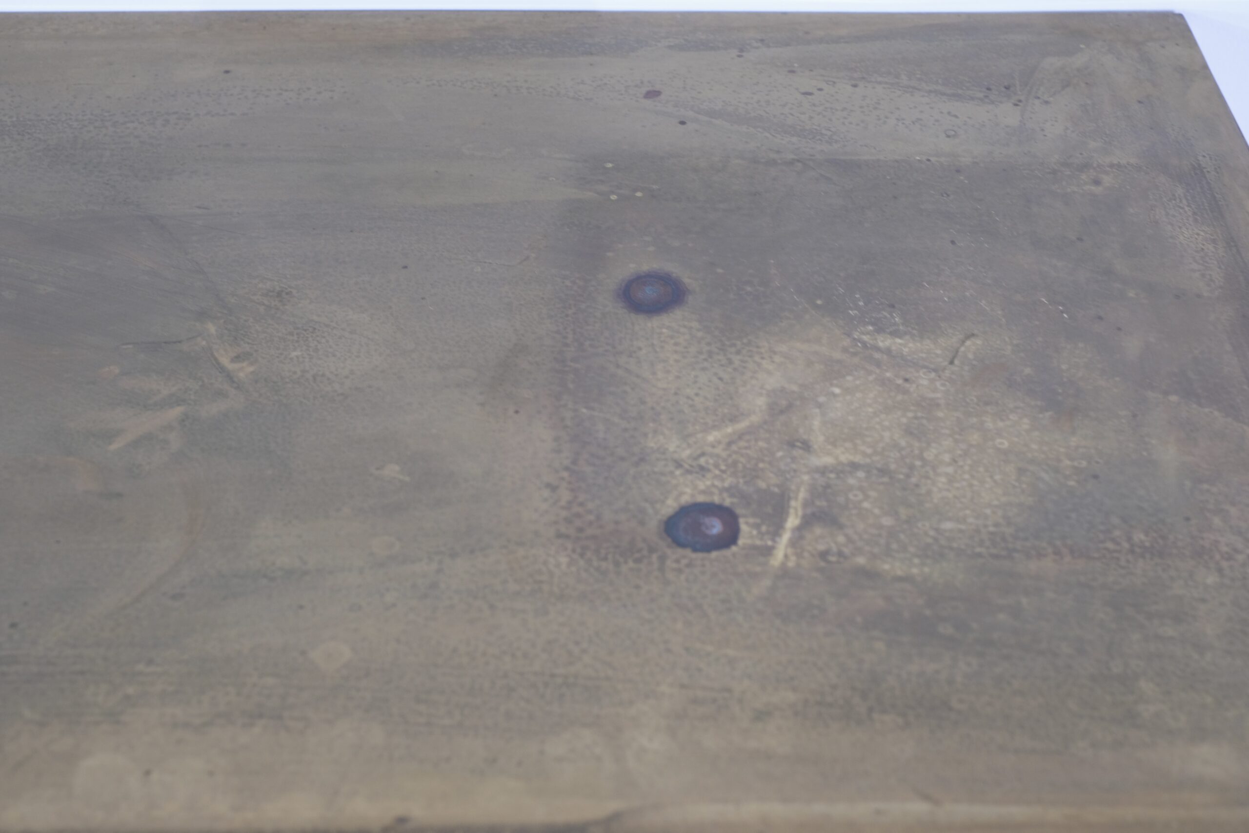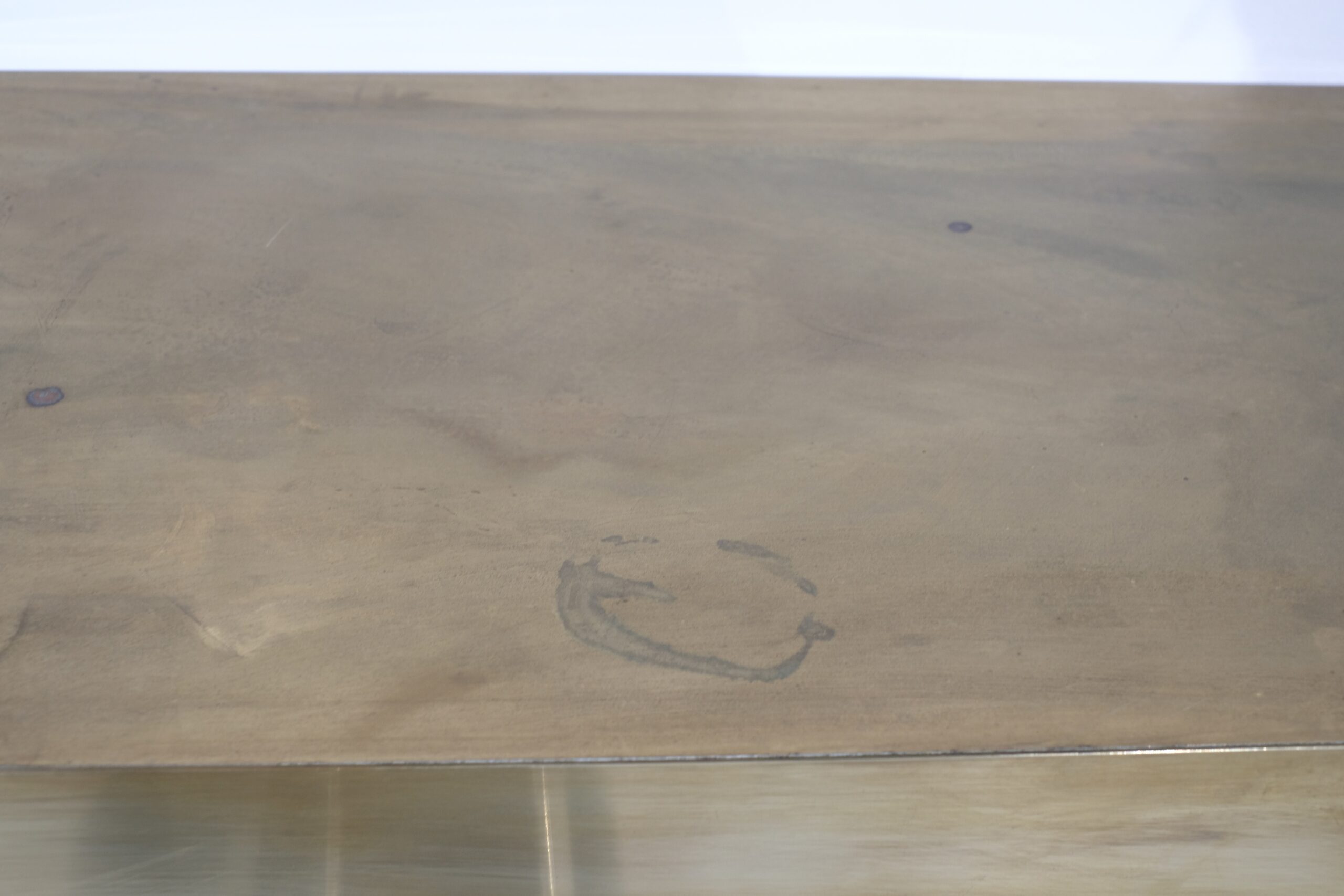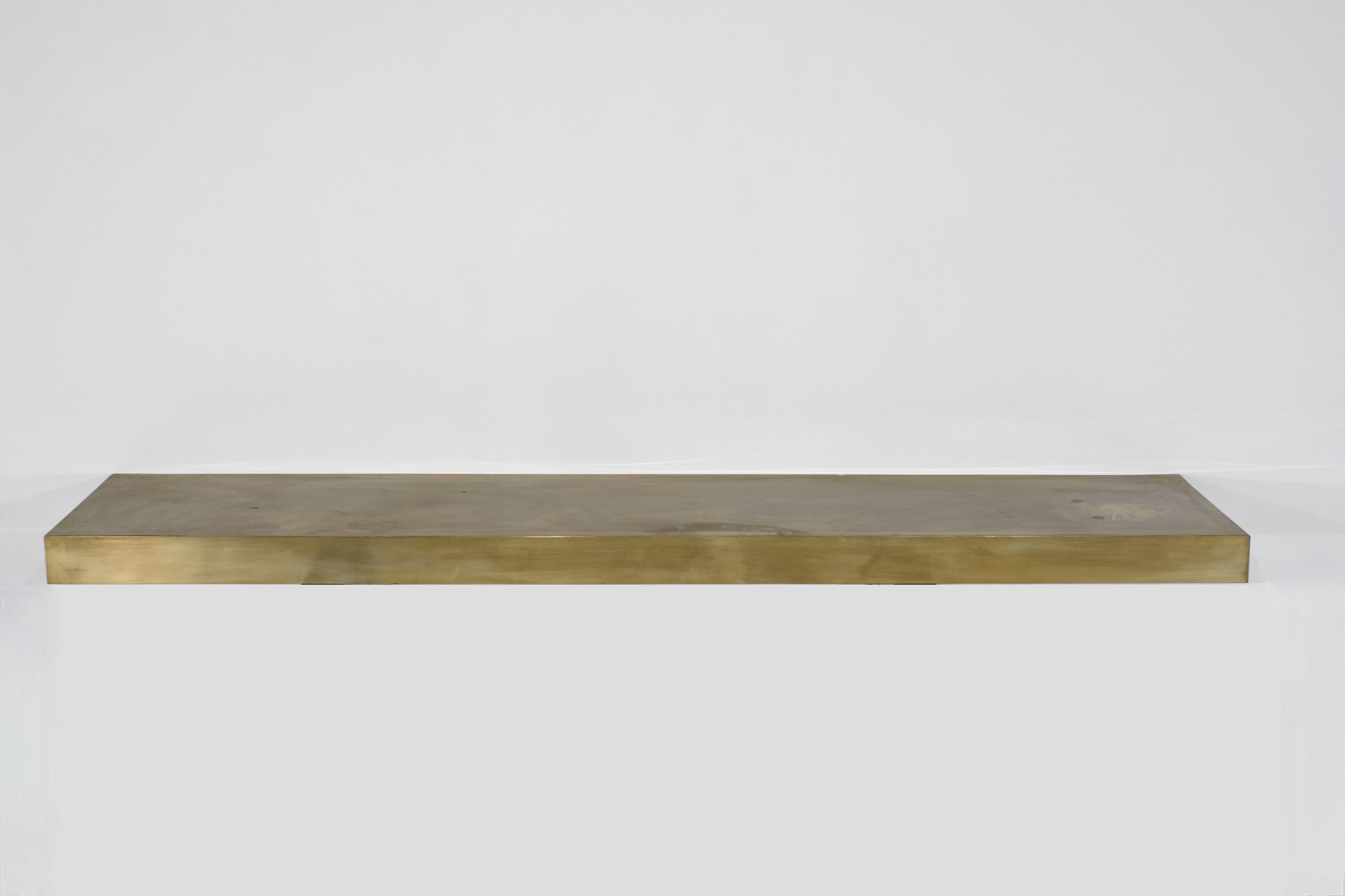 Cette console du milieu du siècle dernier fait partie d »un lot de 2 consoles de tailles différentes complètement revêtues de laiton.