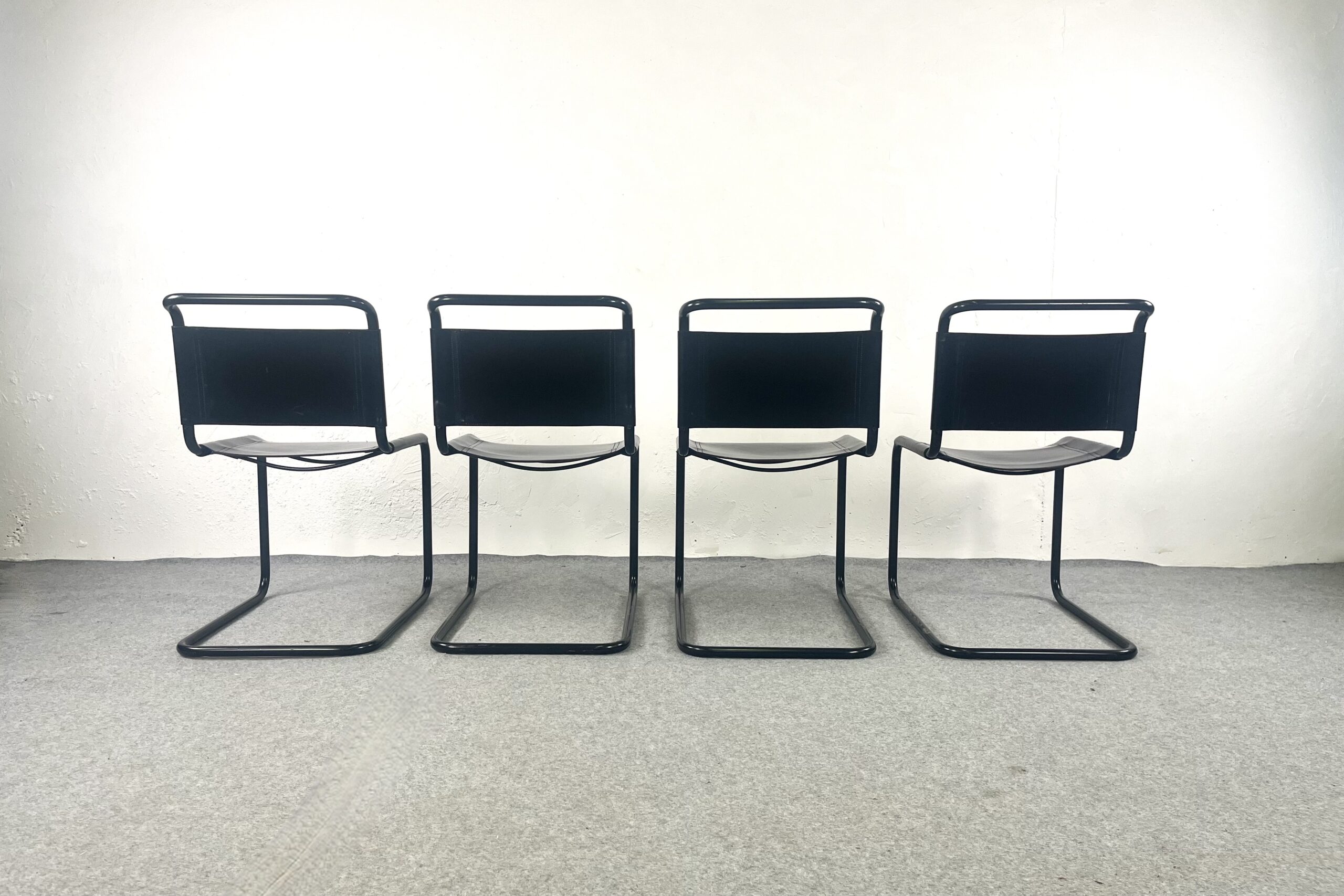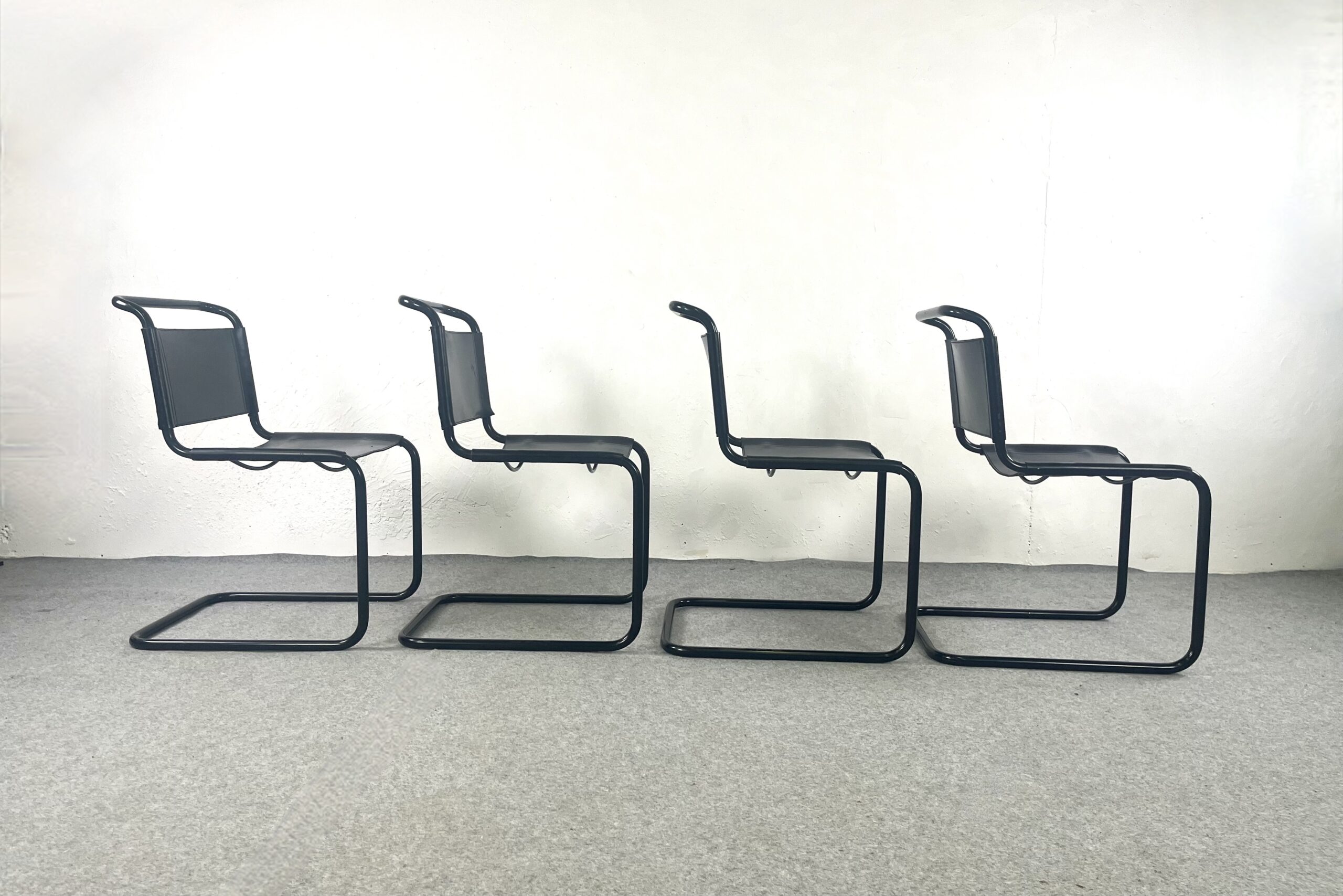 Magnifique série de 4 chaises de style S33 par Mart Stam imaginées dans les années 1960.