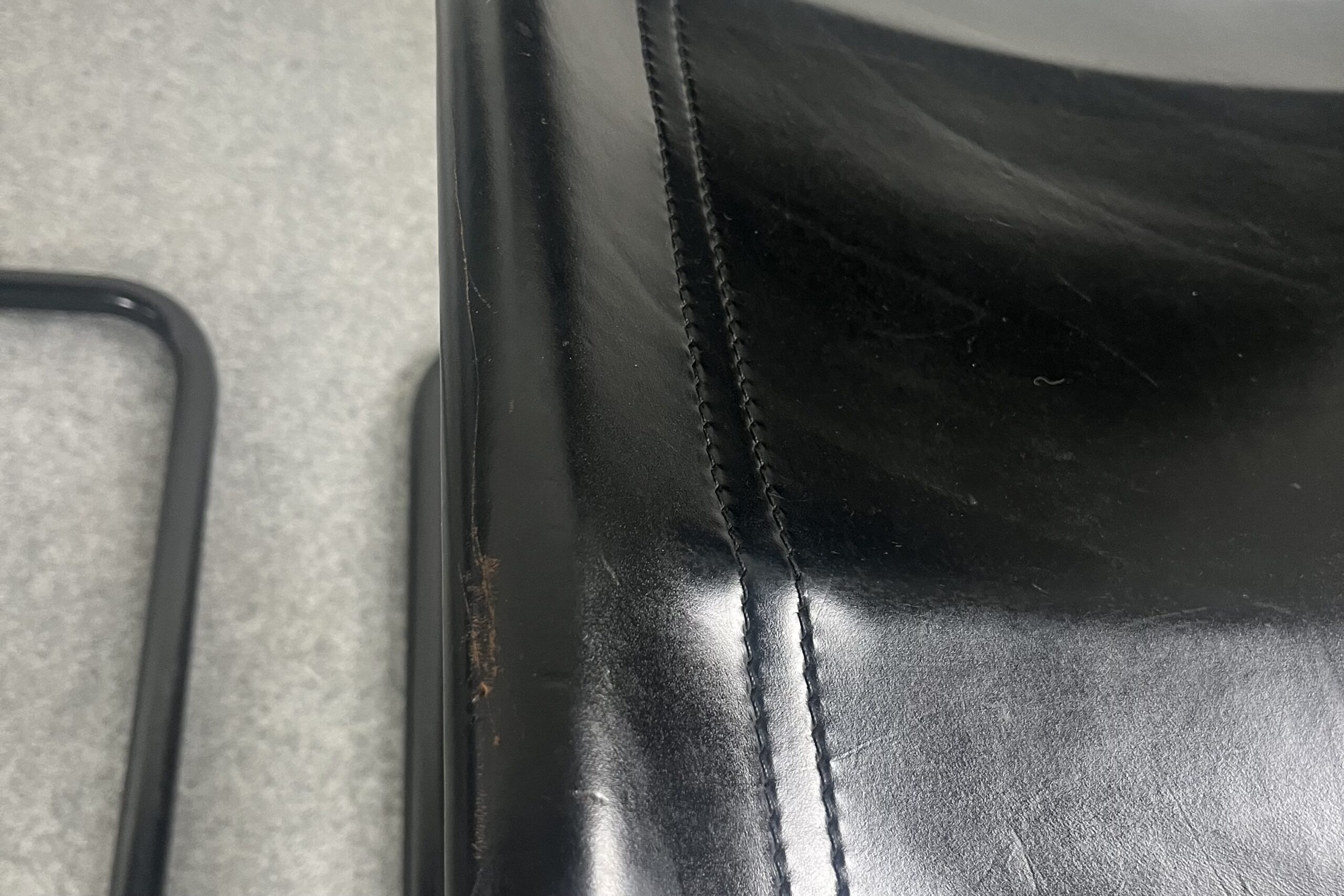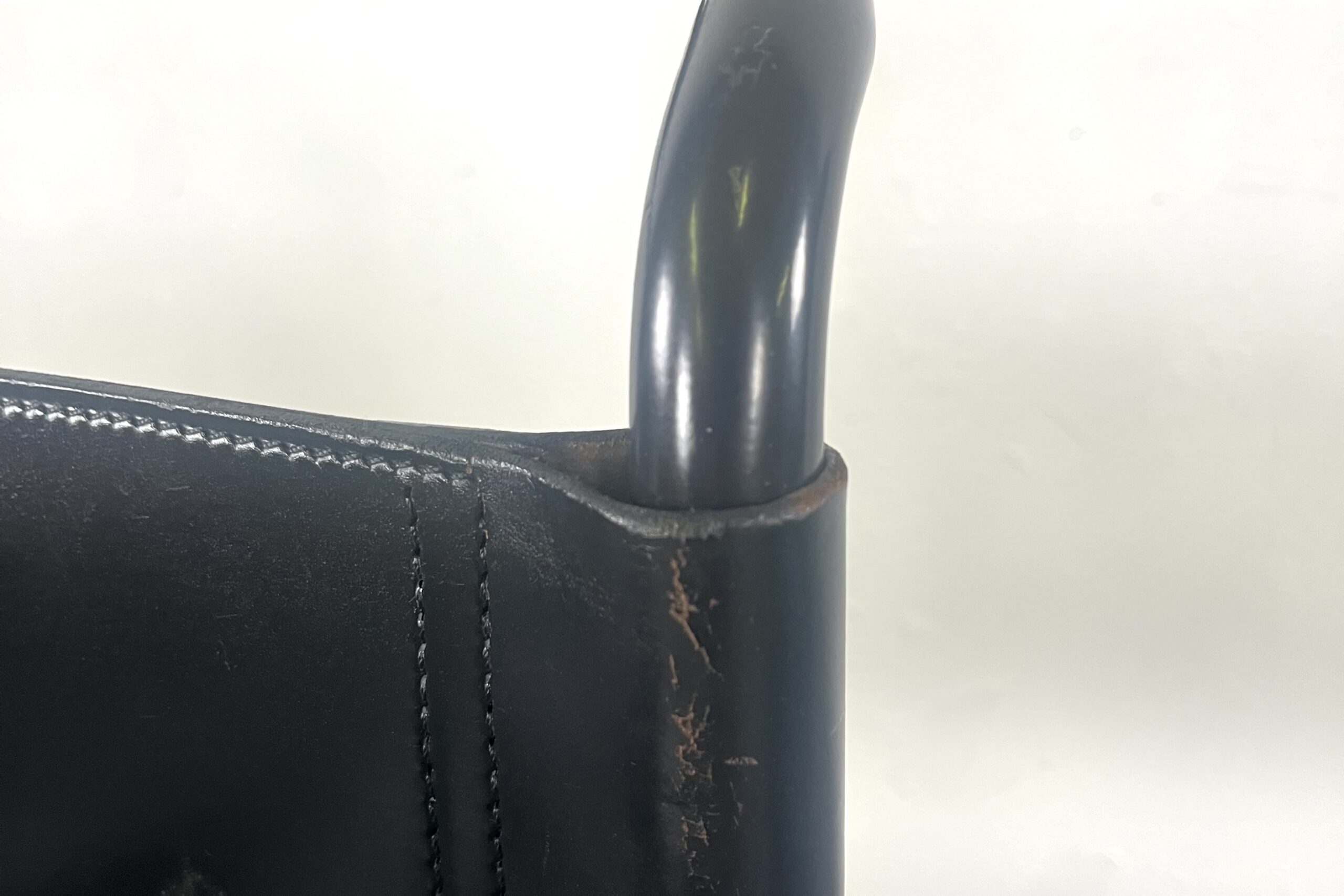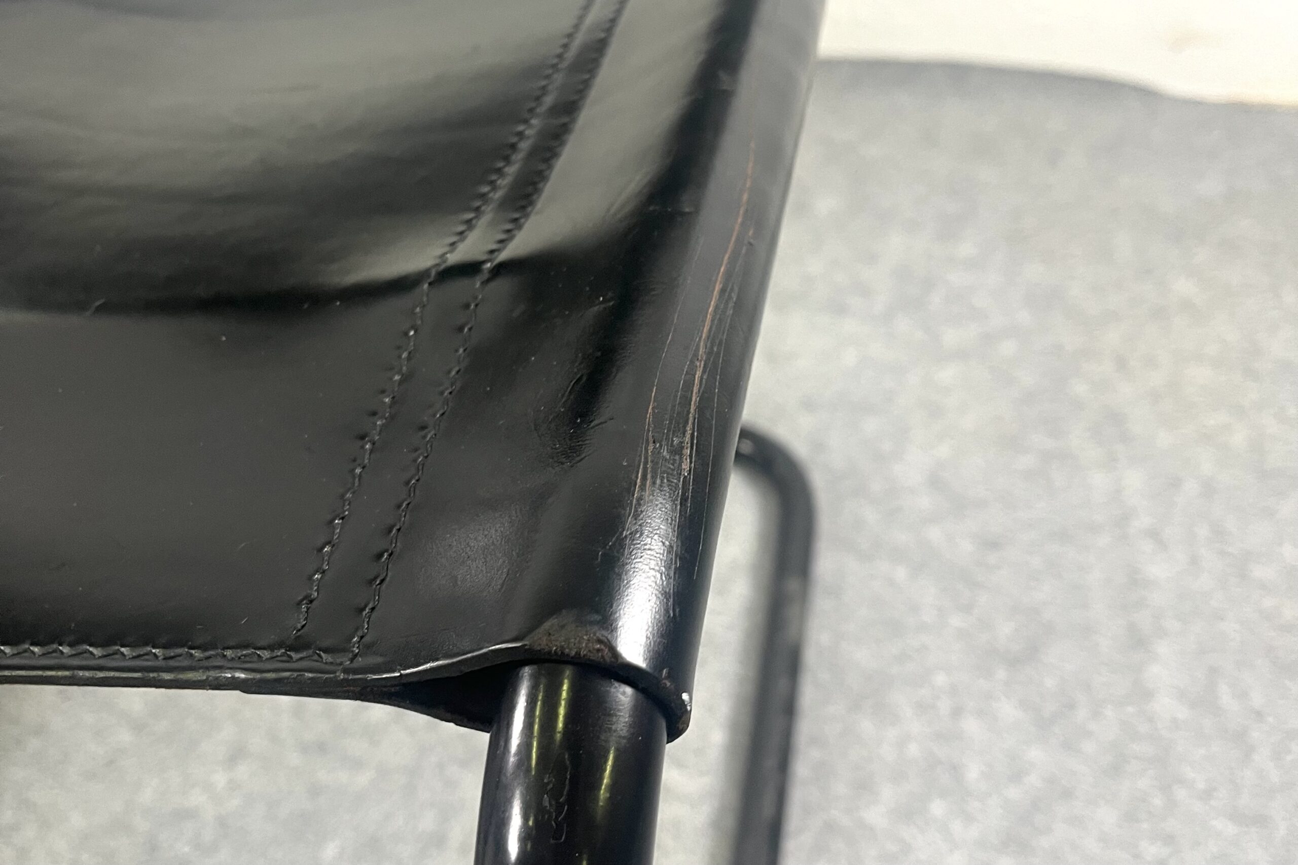 Elles sont dotées d’une structure en chrome noir et d’assises et dossiers en cuir noir.