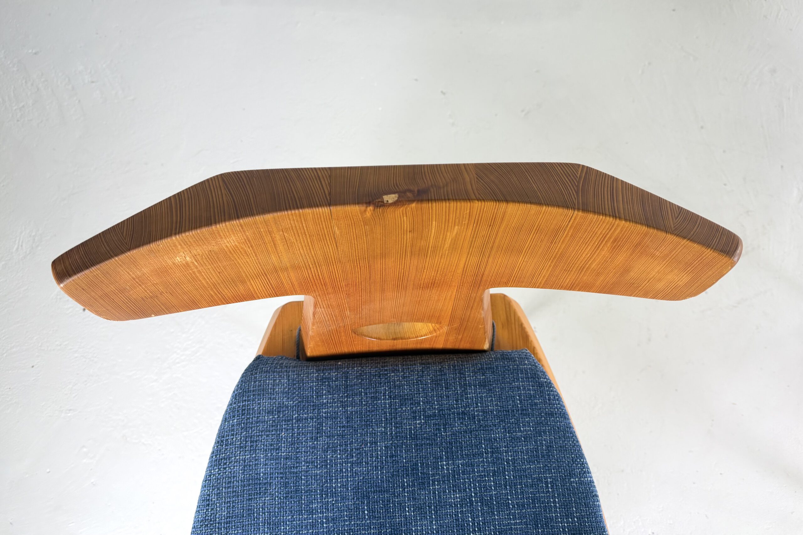 Le banc ainsi que les chaises disposent de leur coussin d’origine de couleur  » bleu nuit ». tous les tissus sont en très bon état et ne comportent aucun dégat.